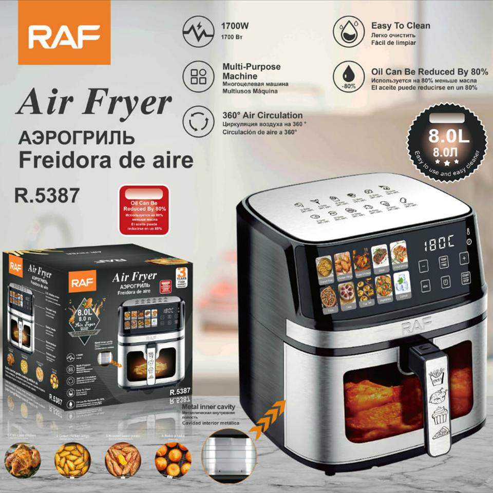 Air fryer 8.0L 1700W RAF R.5387 - ម៉ាស៊ីនបំពងស្ងួត 8.0L 1700W RAF R.5387 Description $55.00 Add to cart