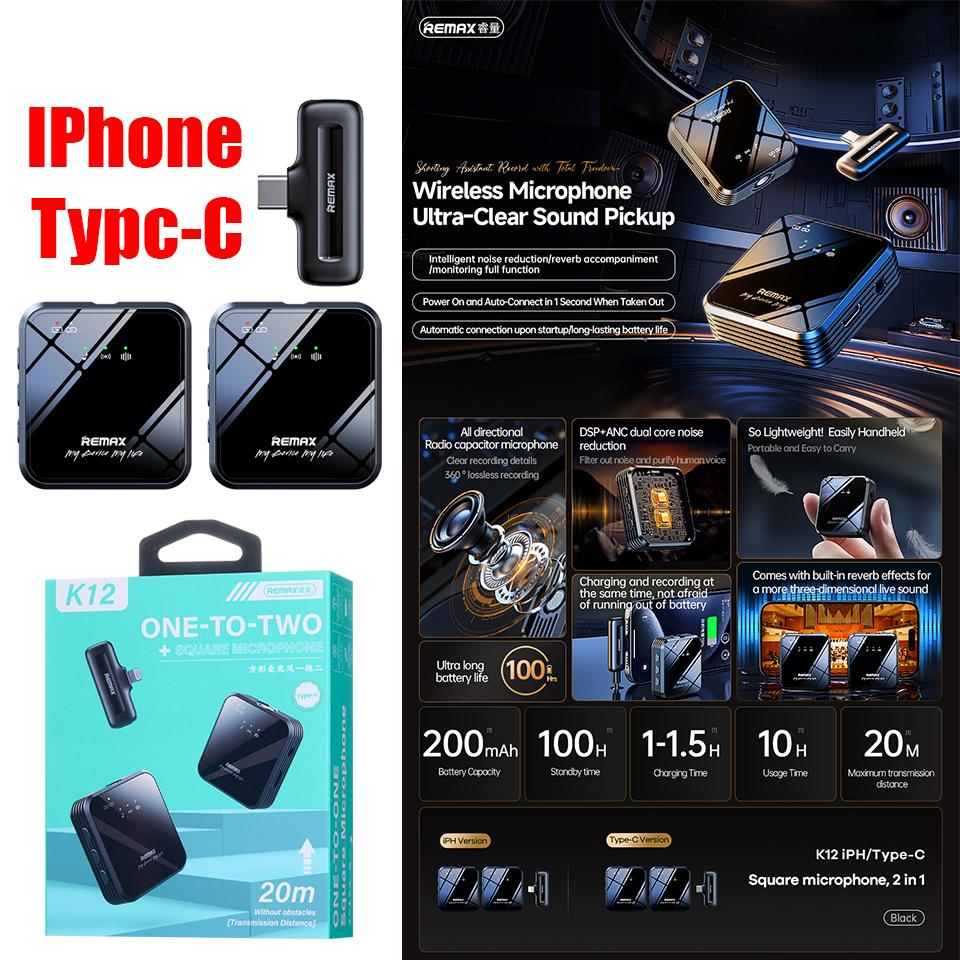 Microphone LIVE Wireless Remax K12 Type-C 2in1 - ក្បាលមេក្រូអត់ខ្សែ Remax K12 Type C 2in1