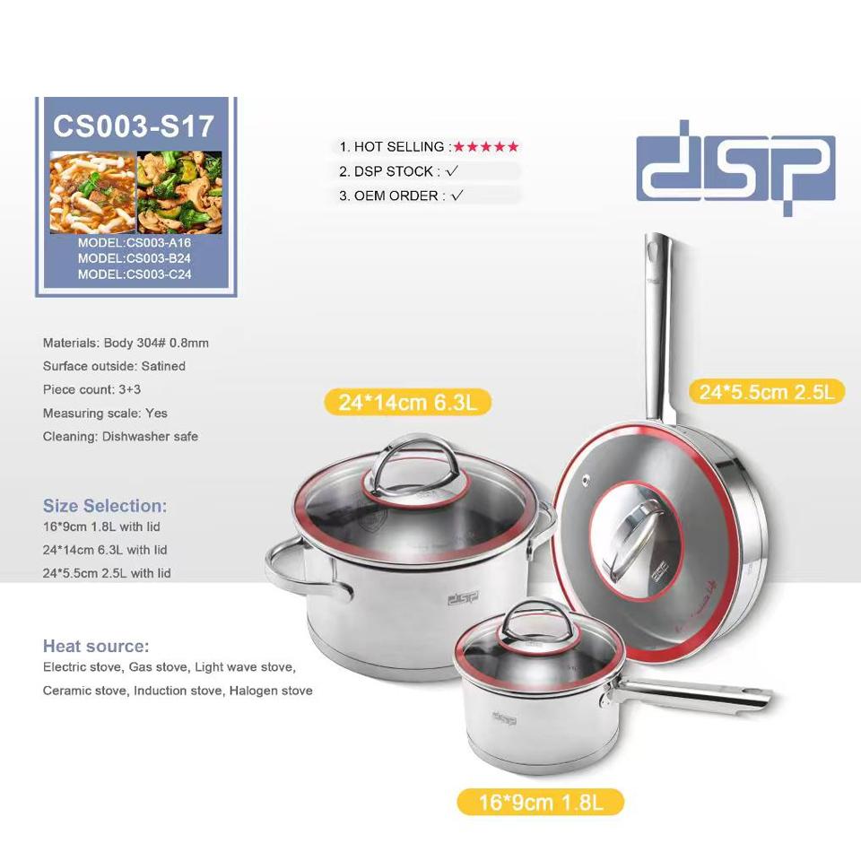 Multi cookware set DSP CS003-S17 3in1 - ឈុតឆ្នាំងខ្ទះអ៊ីណុក DSP CS003-S17 3in1 Description $73.40 Add to cart
