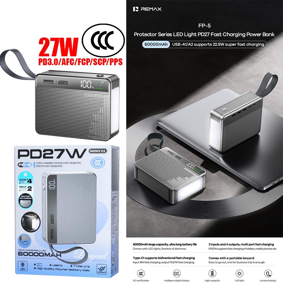 Power Bank Remax FP-5 PD27W 3C 60000mAh - ថ្មជំនួយ Remax FP-5 PD27W CCC 60000 មីលីអំពែ