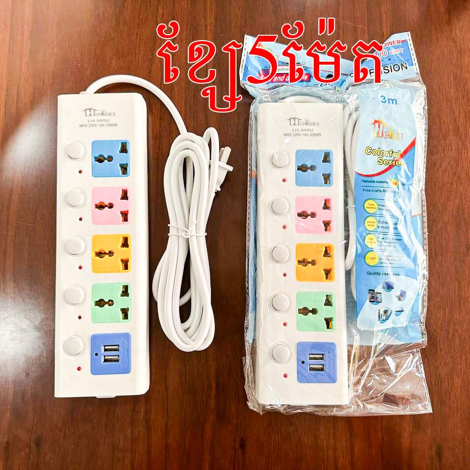 Power Strip 4Socket 2USB LH-345U 5M - ព្រីភ្លើង 4រុនភ្លើង និង 2រុនសាកថ្ម LH-345U 5ម៉ែត Description $3.50 Add to cart