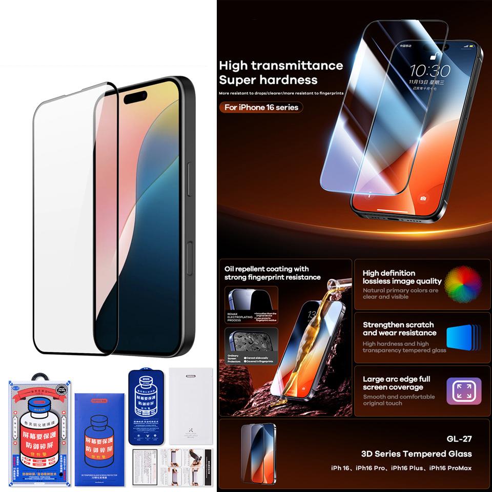 Screen Protector Clear 3D Remax GL-27 iPhone17 ProMax - កញ្ចក់ពេញការពារ 3D មិនប្រឡាក់ Remax GL-27 iPhone17 ProMax Description $2.50 Add to cart
