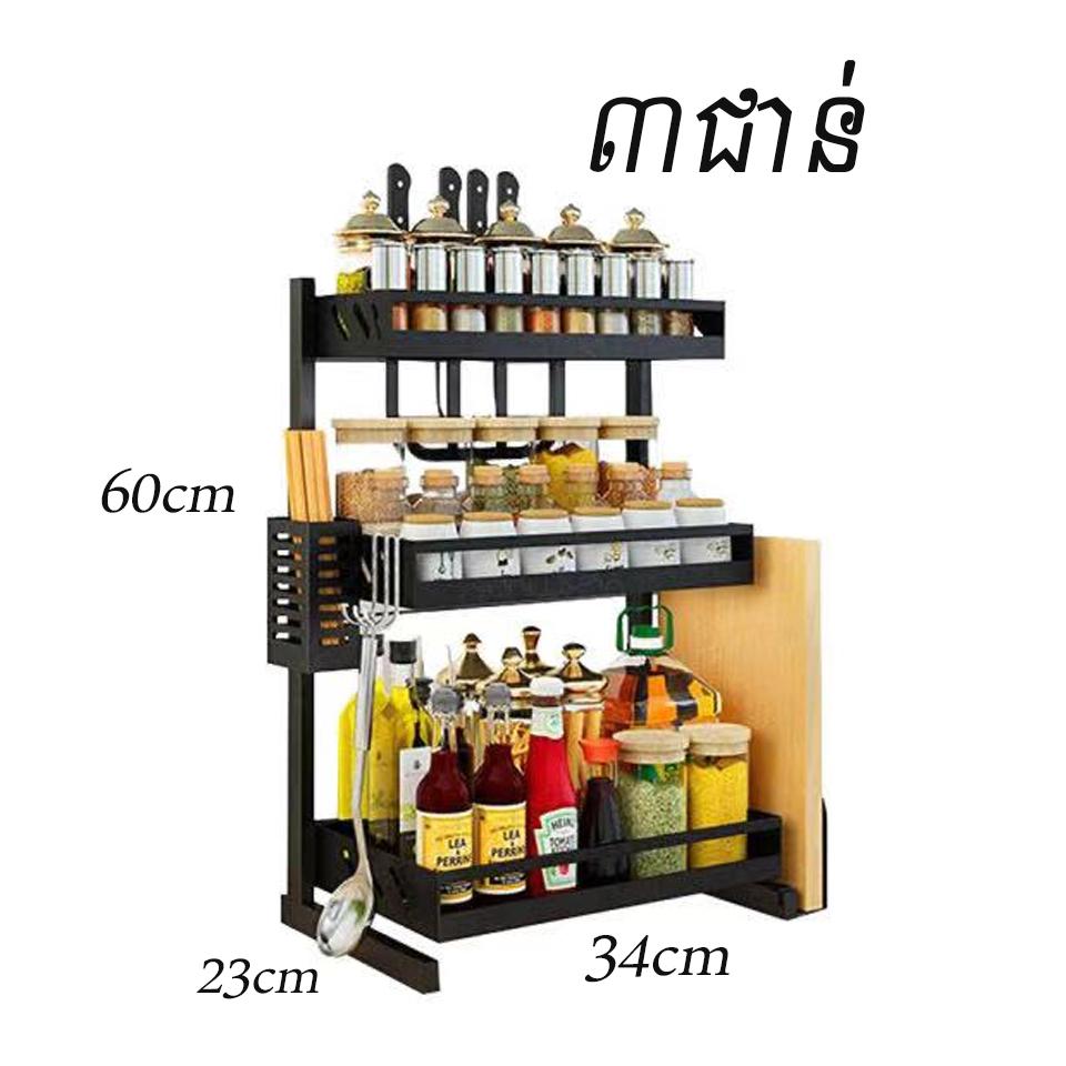 kitchen storage organizer 3 layer 34*23cm*60cm - ធ្នើដាក់គ្រឿង3ជាន់ 34*23cm*60cm Description $28.00 Add to cart