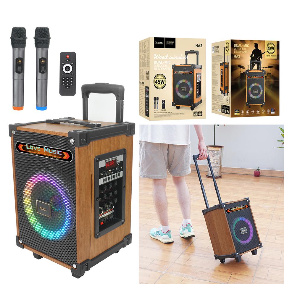Speaker Bluetooth hoco HA2 (2 Wireless Mics) - បាស់ប្ល៊ូធូសប្រើថ្ម ហូកូ HA2 មានមេក្រូប៊្លូធូស2 Description $89.00 Add to cart